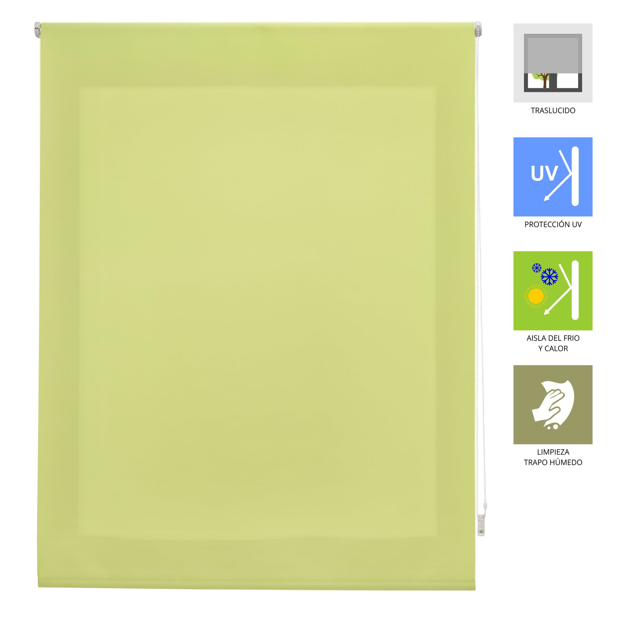 Su tela semitransparente crea espacios brillantes, acogedores y visualmente agradables, perfectos para salones, dormitorios, oficinas o cocinas.Manejo cómodo con cadena lateral: